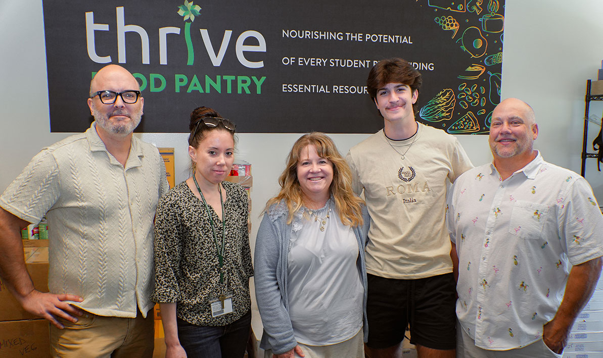 It seems fitting that alum Sheila Dion ’93 would be interested in HCC’s Thrive Center and Food Pantry. Dion is the founder and volunteer director of Erin's Angels, a nonprofit agency in central New York state that delivers free meals to hungry children. “Food is essential to growth, learning, and a bright future,” Dion said in an October 2024 HCC Spotlight interview. “It is more than sustenance. It is the foundation of health, happiness, and dreams. But, for too many kids, it is a daily struggle. I believe that every child deserves the opportunity to grow, learn, and thrive without the burden of hunger.” Earlier this month, Dion, who grew up in Springfield, stopped by the Thrive Center to talk to Thrive coordinator Ben Ostiguy and food pantry coordinator Elizabeth Eastman. She left impressed. “Returning to HCC and seeing the Thrive Center filled me with so much pride and gratitude,” Dion later wrote. “To know that my alma mater cares for students not only with education but also with food, school supplies and hygiene items shows the true heart of Western Mass. It really proves that when we lift each other up, we rise together.” PHOTO: Thrive coordinator Ben Ostiguy, left, food pantry coordinator Elizabeth Eastman, and Sheila Dion ‘93, Dion’s son John and her fiancé Dean, during an August visit to Thrive.