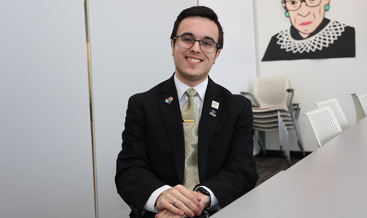 As a new student who had recently relocated from California, Barney Garcia ’24 didn’t waste any time getting involved at HCC. During his first year, he joined Student Senate, restarted the Emerging Business Leaders Club, and got a job in the Business Office. In his second year, 2023-2024, he served as student trustee. "I felt like folks here already knew me, as if it was a familiar place I'd been before,” Garcia said back in 2023. “I was taken away by the liveliness of the faculty and staff and all the different clubs and support services. That was heartening, and it motivated me.” Still not one to lurk, Garcia, 22, was recently elected student trustee at Westfield State University, where he is completing a bachelor’s degree in political science and public administration. He is also co-founder and president of the Queer Straight Alliance at Westfield and the commuter representative on the Student Government Association. Outside of that, he maintains a strong connection to HCC, where he works part time in the Facilities office. “Something that I always tell people is that I really struck gold,” he said. “I think coming to HCC was the best decision I've made. I don't feel I could have gotten the same level of opportunities anywhere else.” PHOTO: Barney Garcia '24, during his student days at HCC