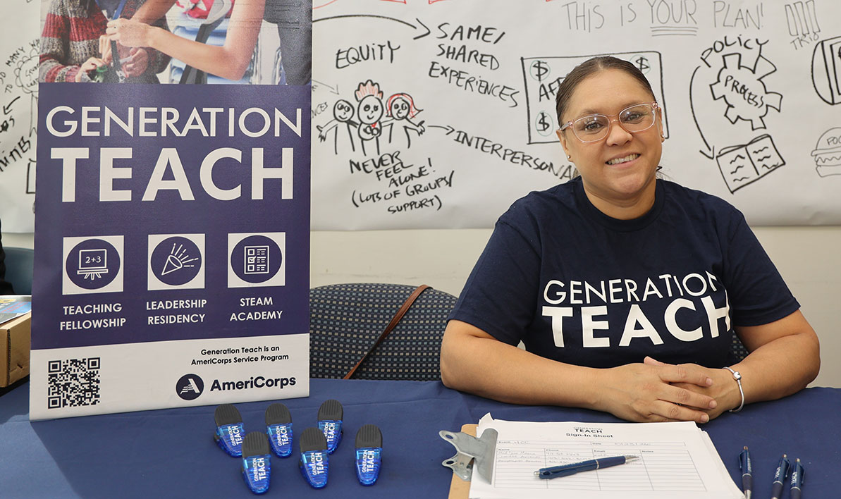 Meanwhile, at the same networking fair, HCC alum Amneris Narvaez ’04 sat at the next table over, recruiting students for internships at Generation Teach, a nationwide AmeriCorps-funded program. Narvaez is regional director for Central and Western MA Programs for Generation Teach, where she has worked since 2019. She graduated from HCC with her associate degree in Deaf Studies before heading to Westfield State University for her bachelor’s in special education and Lesley University for her master’s in math education. “HCC set me up for success,” she said. Narvaez transferred to Westfield after doing an internship at the Willie Ross School for the Deaf in Longmeadow. She has also taught in Springfield. “I currently lead a summer teaching internship program here in Holyoke that gives high school and college students the opportunity to teach,” she said. “I’ve had HCC students participate and try teaching during the summer internship.” PHOTO: Amneris Narvaez ’04 at HCC’s Oct. 22 community networking and internship fair